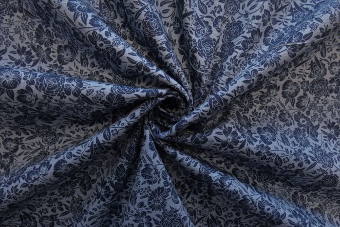 A Quality Ex-Designer 100% Cotton Poplin Floral Print On Denim Background