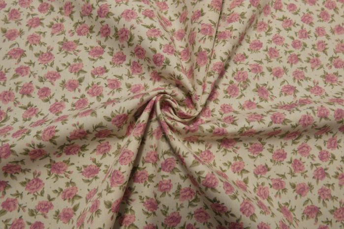 A Quality Ex-Designer 100% Cotton Poplin Digital Floral Print in Rose Pink, Spring Green & Cream Tones