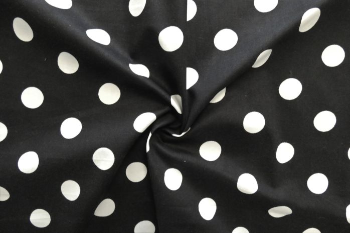 A Quality Ex-Designer 100% Cotton Poplin Polka Dot Print In Black And White