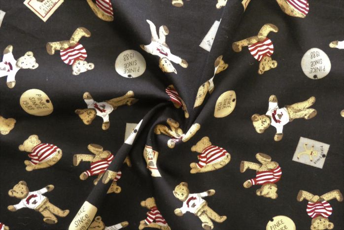 A Quality Ex-Designer 100% Cotton Poplin Teddy Print On A Black Background