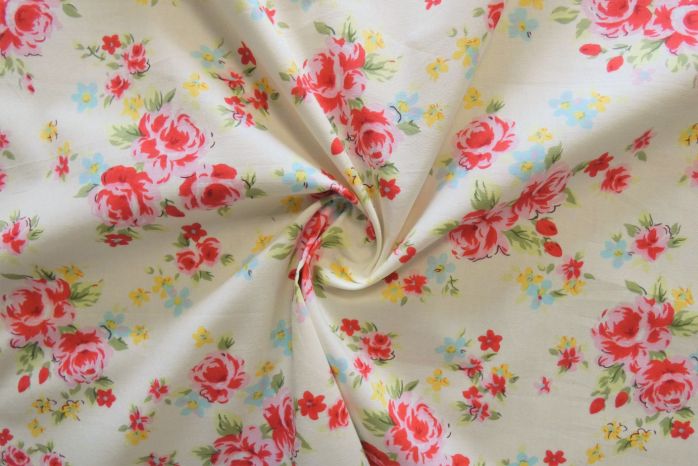 A Quality Ex-Designer 100% Cotton Poplin Floral Print On A Cream Background