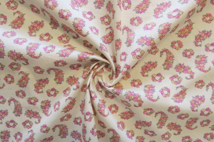 A Quality Ex-Designer 100% Cotton Poplin Floral Print On A Cream Background