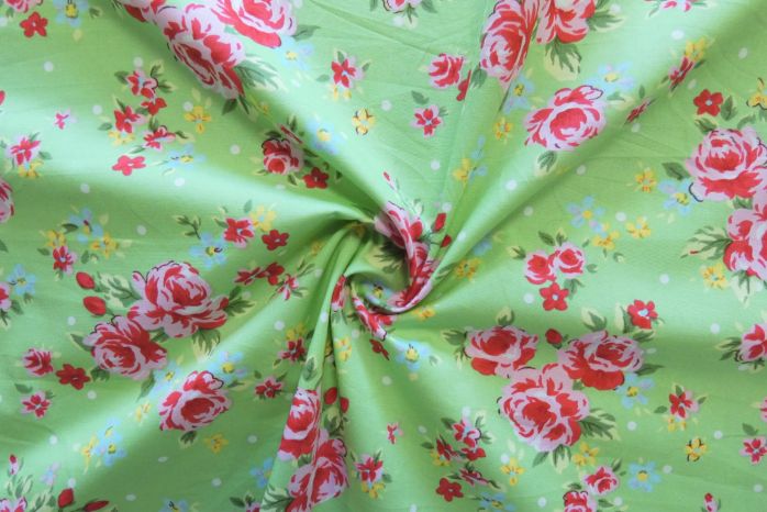 A Quality Ex-Designer 100% Cotton Poplin Floral Print On A Bright Mint Green Background