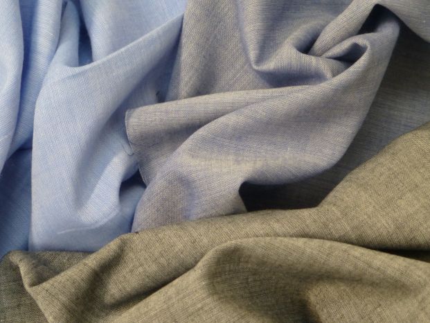 A super soft cationic chambray-look cotton lawn. This fabric has the appearance a bit like linen with its irregular natural-style grain to the weave. Suitable for shirts, blouses, and much more.