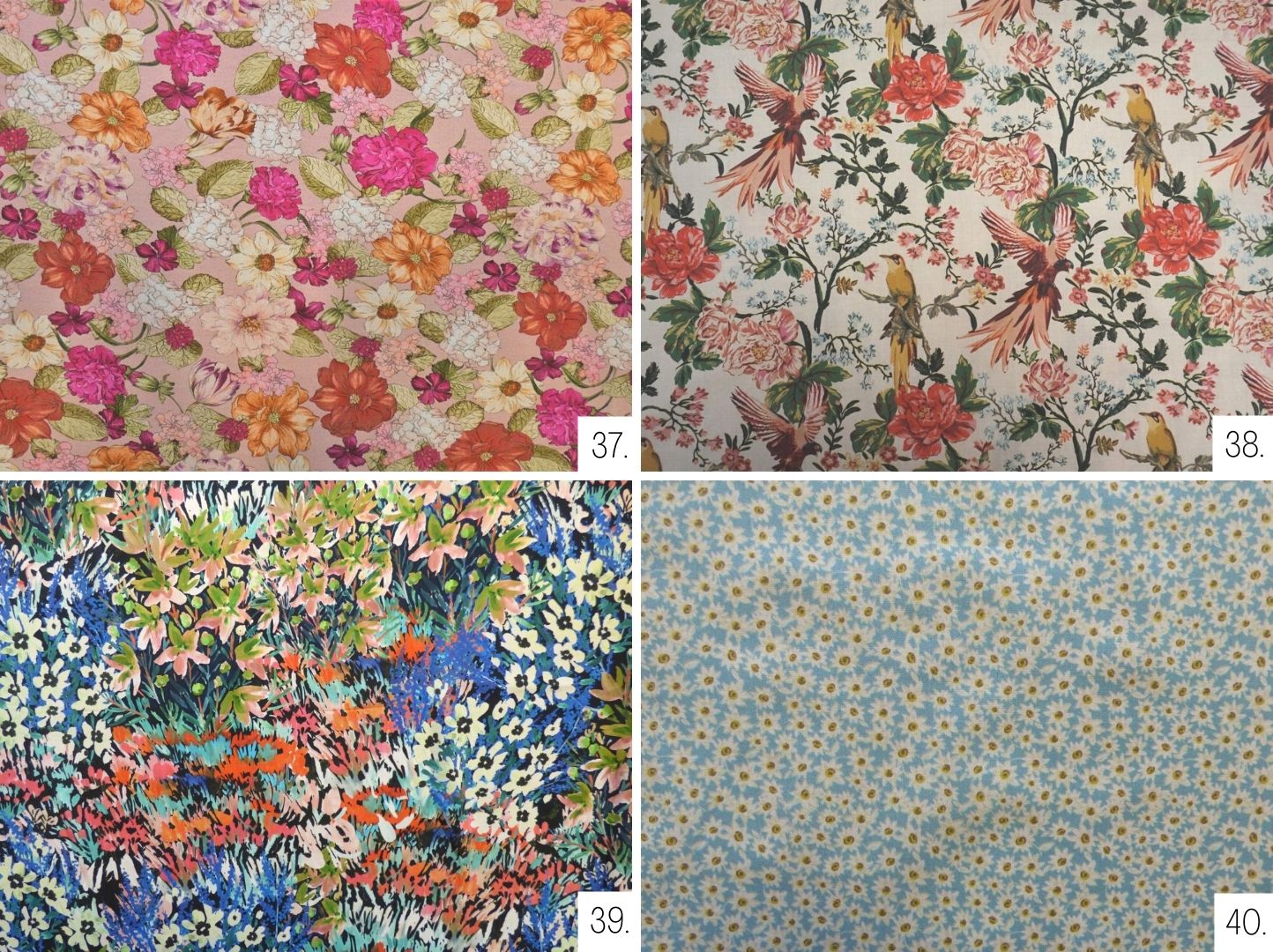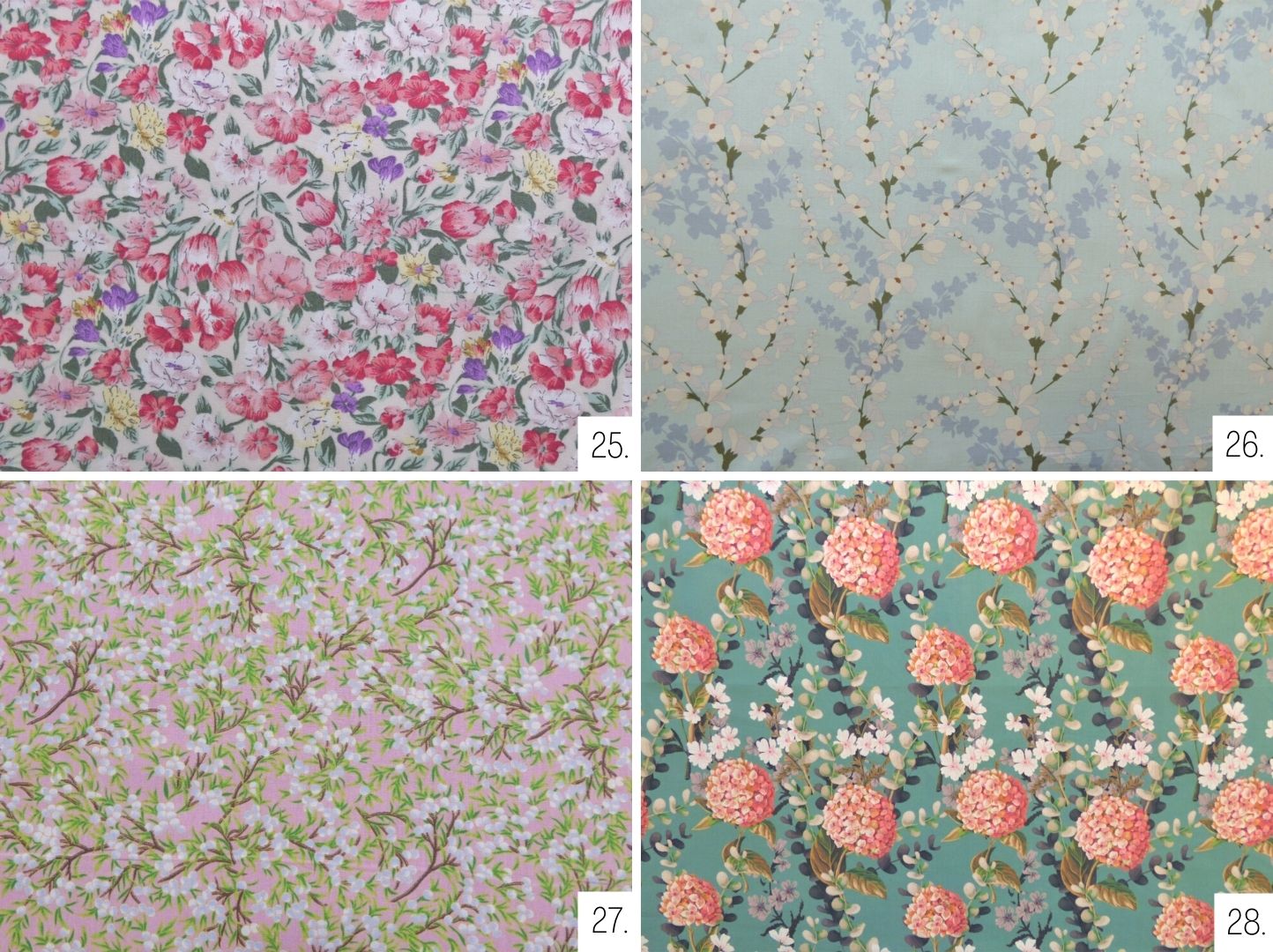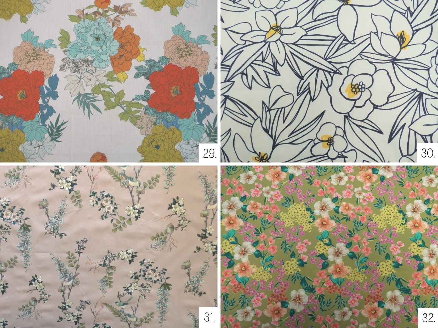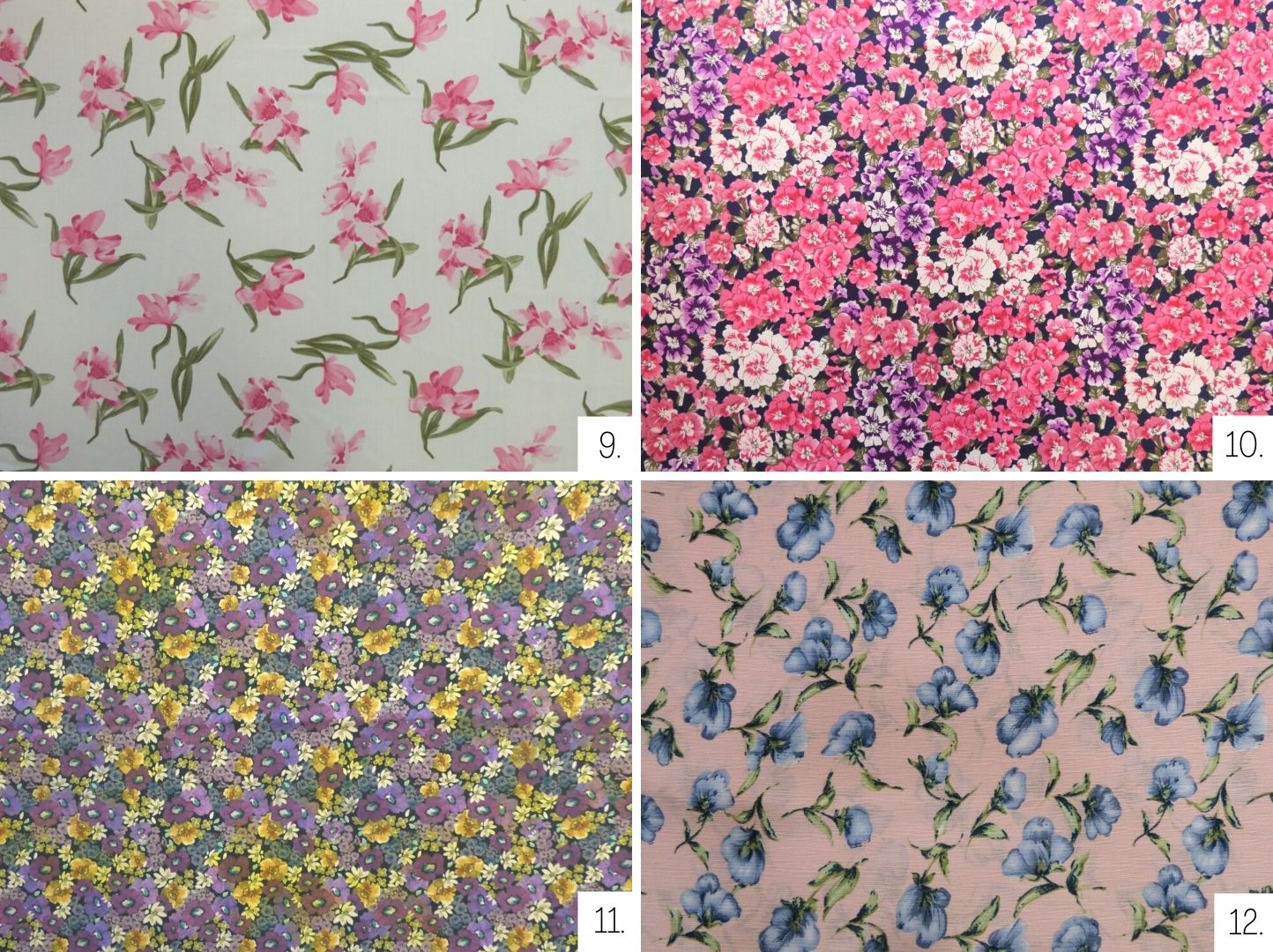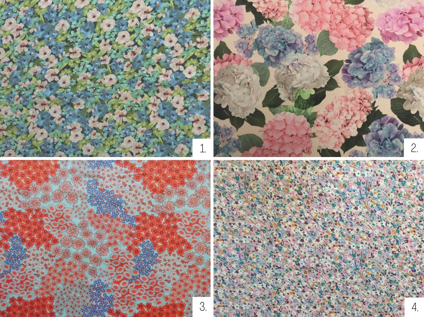 We've included a wide range of prints including ditsy florals, spring pastels, large blooms and much more. The basecloths are wide ranging too - cotton marlie-care lawns, viscose florenza crepe, silk crepe de chine, cool-touch crepe, viscose challis lawn, crepe jersey, polyester lena crepe etc.. There will definitely be something to tickle your fancy!