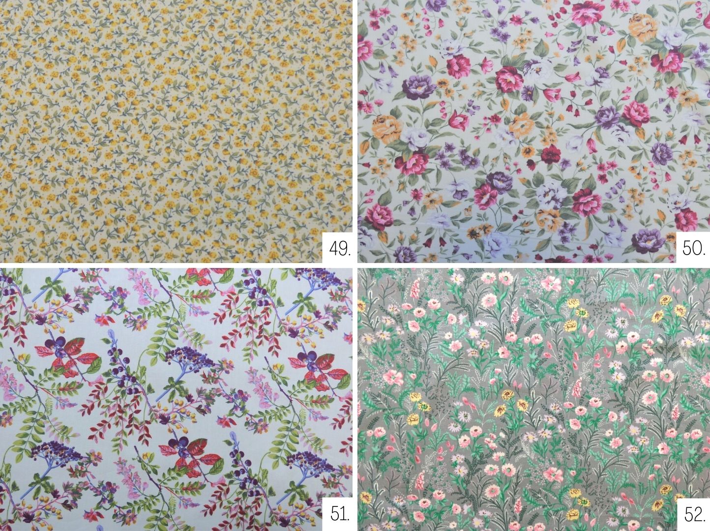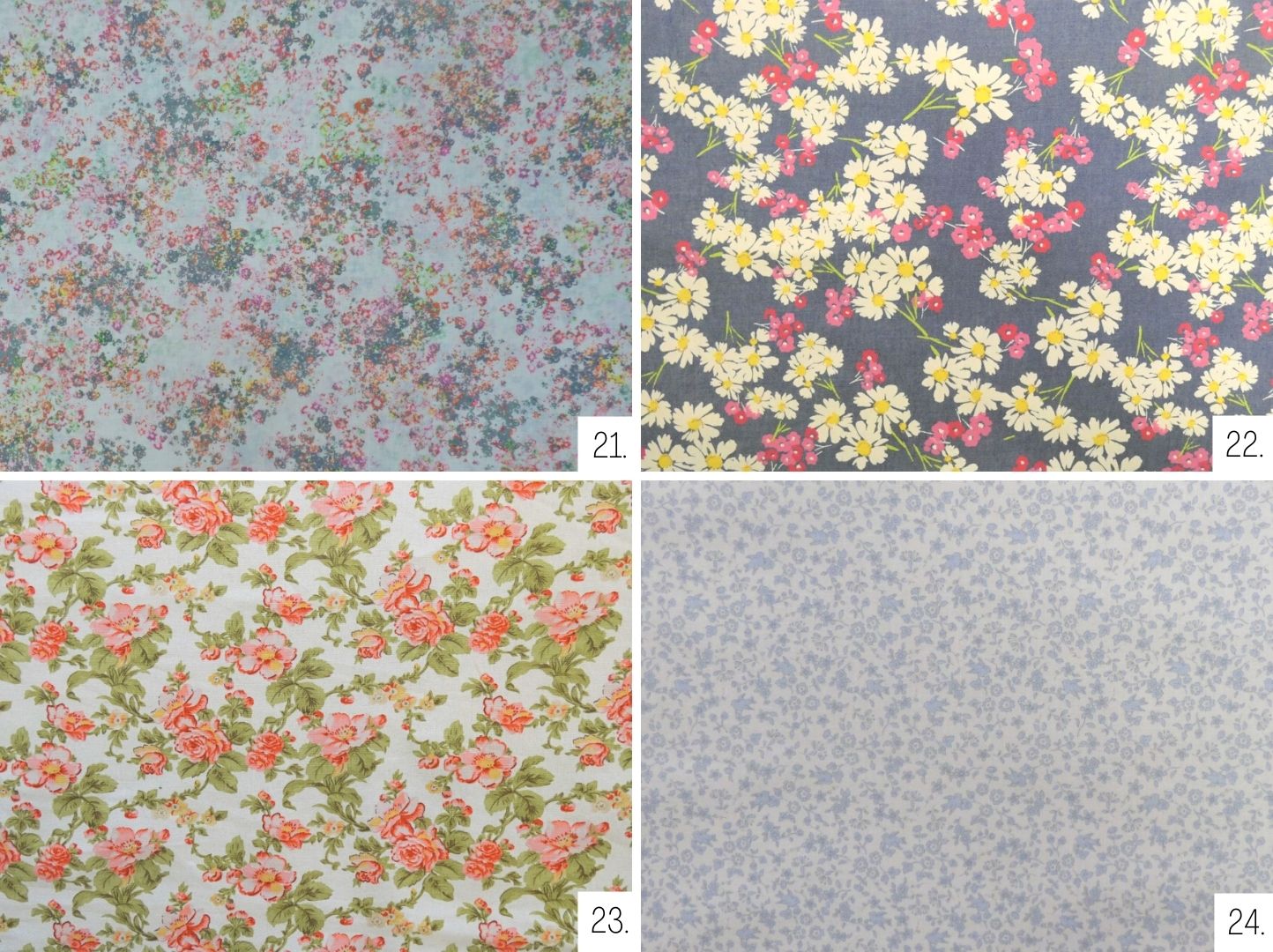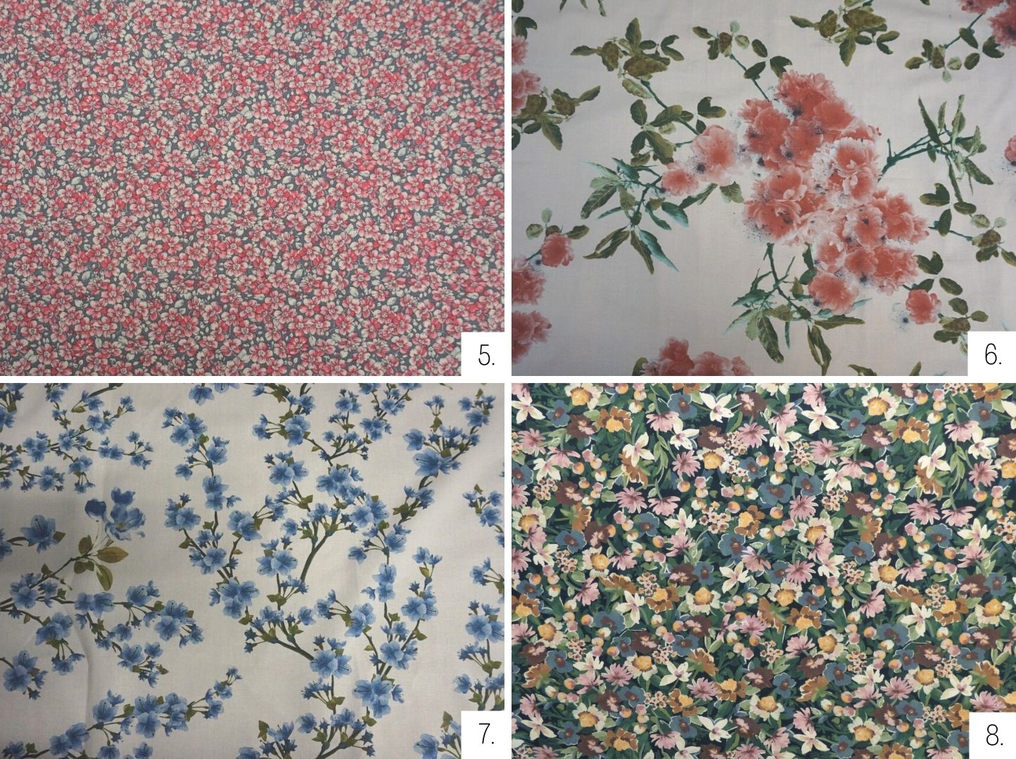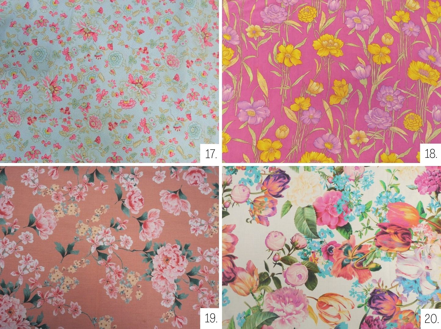 We've included a wide range of prints including ditsy florals, spring pastels, large blooms and much more. The basecloths are wide ranging too - cotton marlie-care lawns, viscose florenza crepe, silk crepe de chine, cool-touch crepe, viscose challis lawn, crepe jersey, polyester lena crepe etc.. There will definitely be something to tickle your fancy!