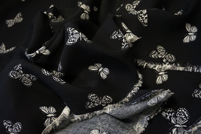 A Soft Handled, Lightweight, Pretty Butterfly Print in Cream on Black Background