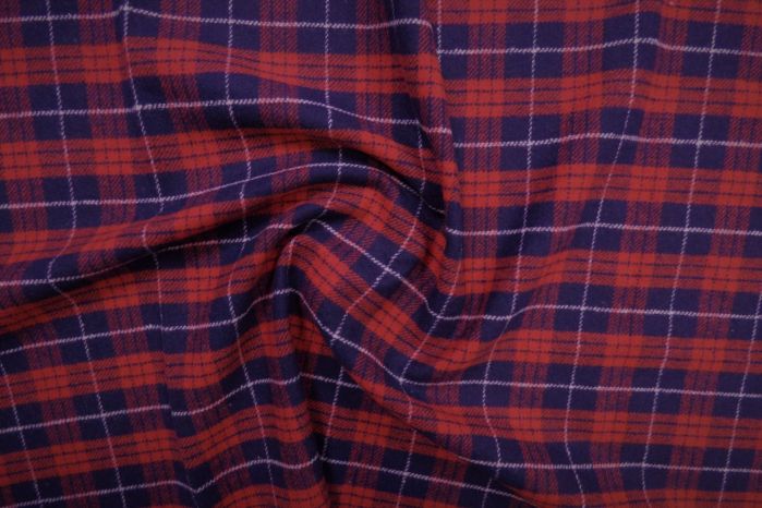 A Lovely Quality Cosy Scottish Wool Mix Flannel Clan Tartan-Style Check In Tones Of Cherry Red, Oxford Navy And White