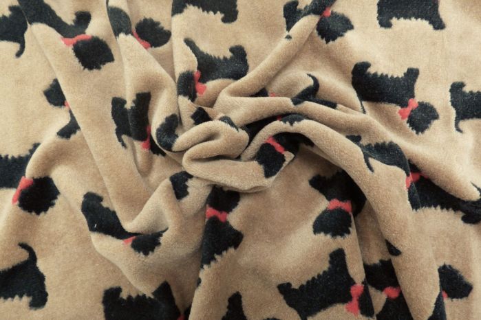 A Lovely Soft Touch Plush Cosy Fleece In A Scottie Dog Design In Tones of Camel & Black