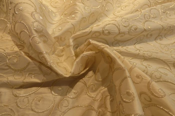 A 100% Silk Embroidered Luxury Dupion in Ivory