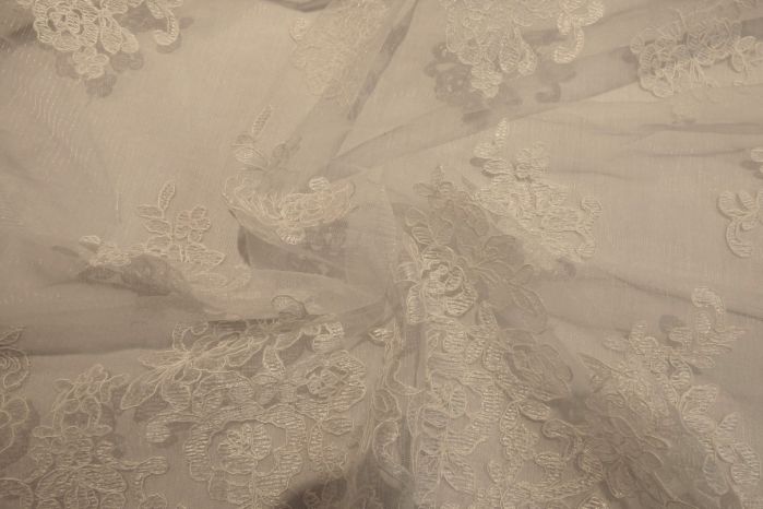 A Stunning Corded Lace-Effect Bridal Net in Ivory With a Lovely Double Bordered Design Edge and Scalloped Selvedge - Ex-Designer Fabric and Very Exquisite!