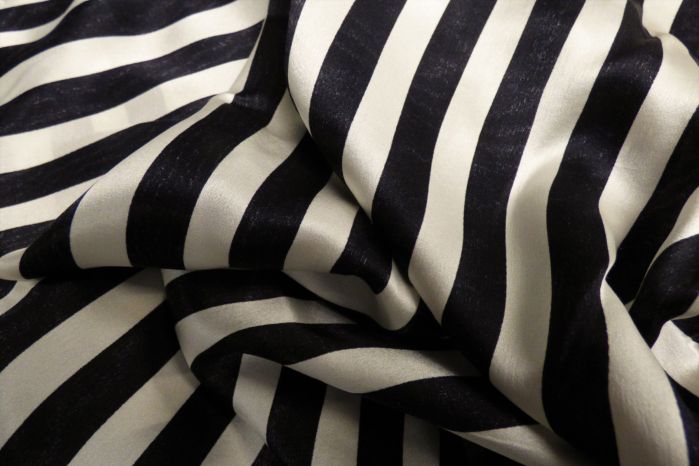 A Lovely 100% Silk Satin 1.3cm Wide Stripe in Black/Ivory - Seconds