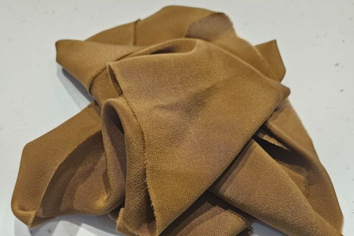 A Beautiful English-Made Ex-Designer Deadstock 100% Silk Sandwashed Plain Heavy Crepe De Chine in Old Gold