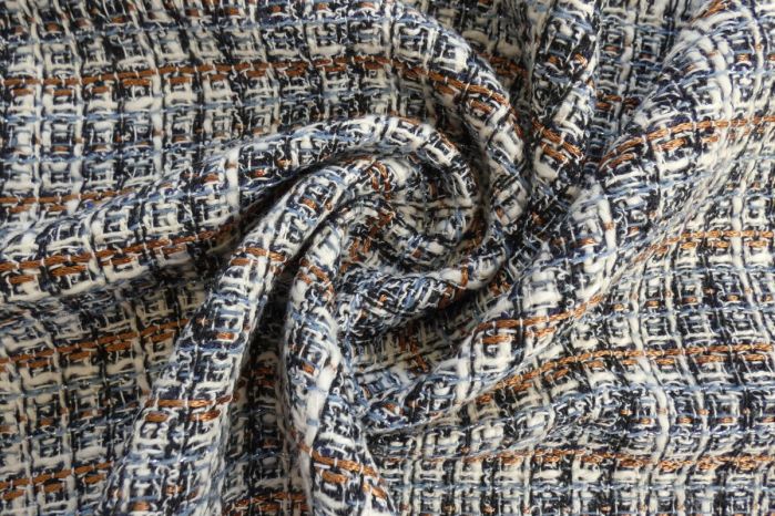 Ex Hobbs Designer Deadstock Multi-Coloured Chanel-Style Tweed Boucle - Tan/Blue/Cream