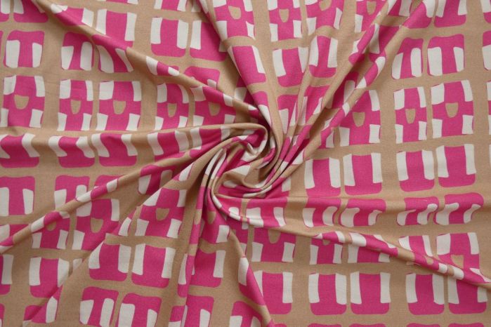 A Lovely Ex Hobbs Deadstock Designer Luxury Stretch Jersey Geometric Digital Print In Tones Of Fuchsia, Fawn and Ivory.