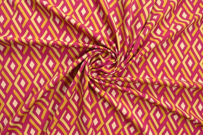 Ex Hobbs Deadstock Designer Luxury Stretch Jersey Geometric Diamond Digital Print - Raspberry/Chartreuse