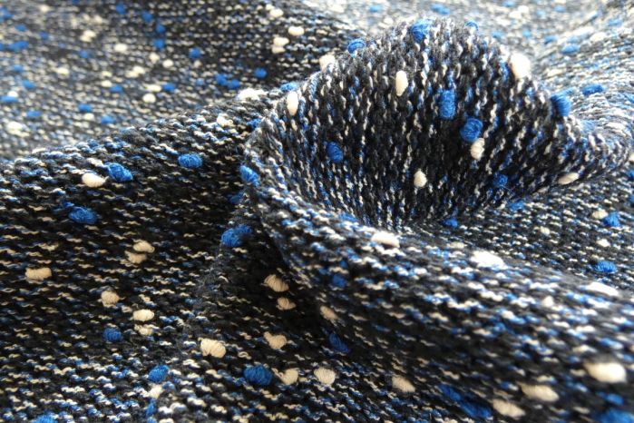A Gorgeous Ex Hobbs Heavy Weight Knitted Boucle Tweed with Textured Bobble Threadwork in Navy, Cobalt and White.