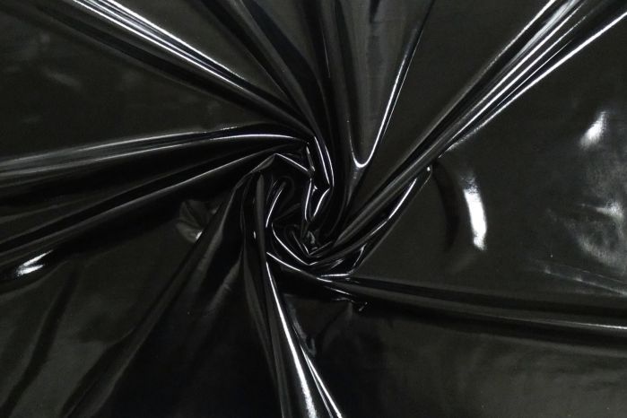 A Lovely Ex Italian Deadstock Designer Glossy Black Patent Faux Leather-Look Latex Fabric With A Flexible Stretch Drape And Smooth Hand.
