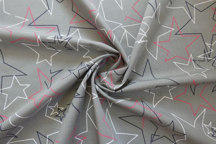 Ex Paul Smith Designer Deadstock Cotton Poplin Retro-Style Star Print - Grey