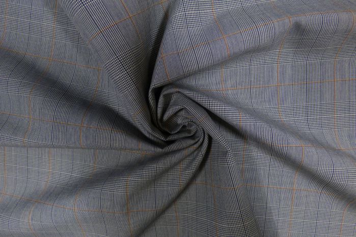 Ex Paul Smith Deadstock Designer 100% Cotton Tartan Style Shirting - Navy/Orange