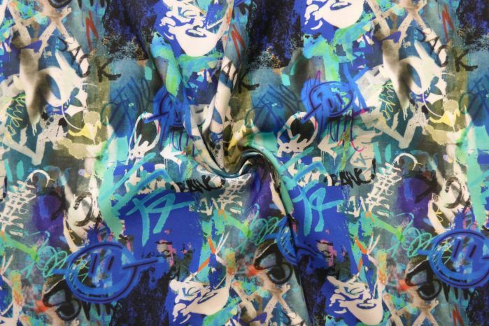 A Stunning Abstract Digital Graffiti Print In Tones of Blue, Teal & Green