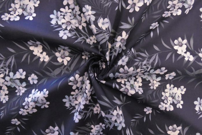 A Lovely Cotton Cerutti Combed Lawn Digital Floral Print On A Midnight Navy Background