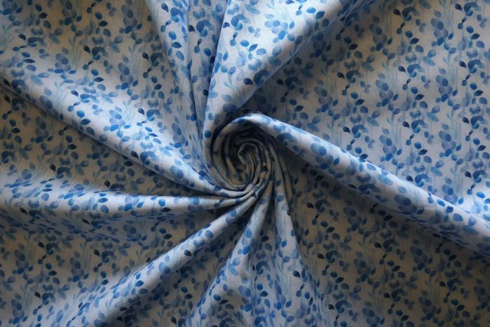 A Beautifully Soft 100% Superfine Cotton Louise Lawn Digital Floral Print in Tones of Navy, Blue and White
