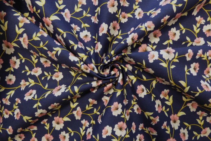 A Lovely Digital Printed Floral Poplin in Candy Pink, Gold, Beige & Navy