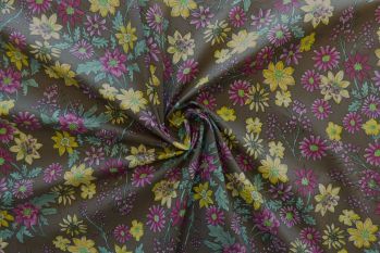 A Lovely Digital Printed Floral Poplin in Soft Pink, Forest Green & Navy
