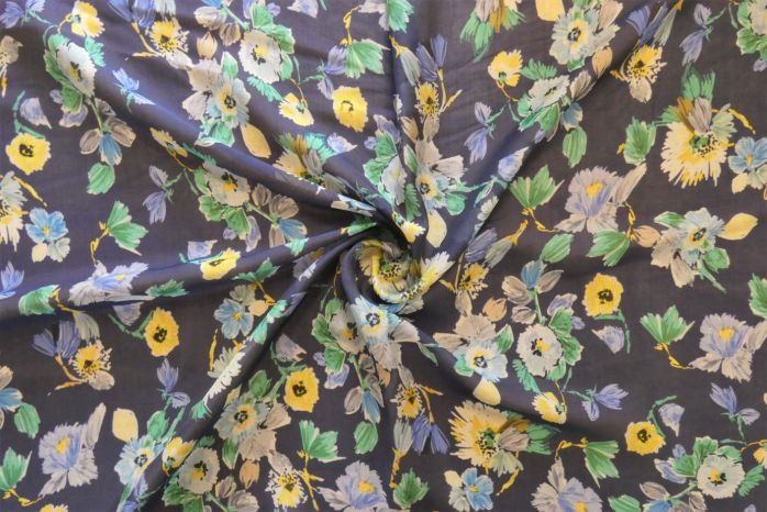 A Lovely Nicole Voile Lawn Digital Floral Print In Tones Of Marine Navy, Lemon Yellow, French Grey And Spring Green