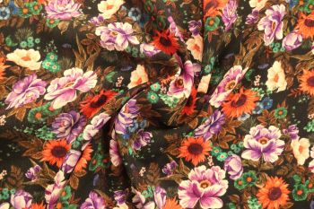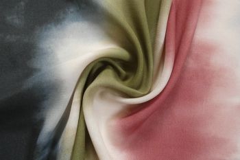 A Lovely Woven Viscose Morracain Crepe Digital Abstract Floral Print in Tones of Saffron Yellow, Aqua Blue, Hot Pink and Ivory