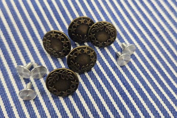 Now Buy 'Hammer On' Engraved Denim Buttons in 3 Colours - Silver, Gumetal and Antique Brass.