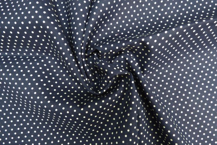 A Lovely Pure Cotton Poplin in a Mini Printed Polka Dot Spot Design in White on Navy Blue
