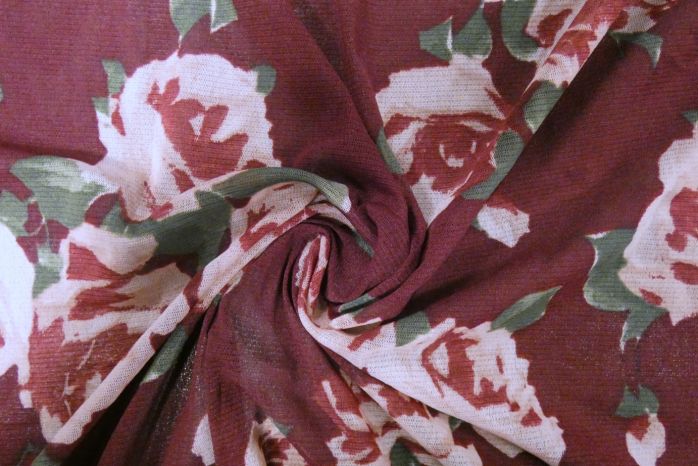 A Pretty Floral Mesh Jersey In Burgundy, Pale Blush Pink And Moss Green