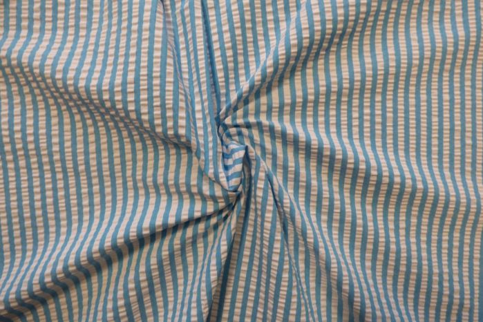 A Lovely Yarn-Dyed Seersuck Stripe in Turquoise & White