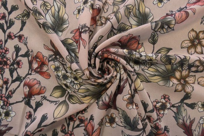 A Lovely Polyester Soft Georgette Crepe Digital Floral Print in Muted Tones of Blush, Sage, Beige, Ivory & Rose