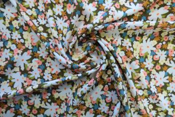 A Stunning Viscose High Twist Rickardi Lawn With A Beautiful Digital Floral Print in Tones of Lilac, Rust, Ochre, Green and Black