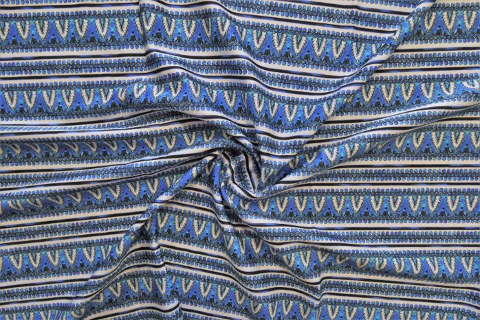 A Lovely Vibrant Swimwear Jersey Digital Print In Tones Of White, Azure Blue And Turquoise