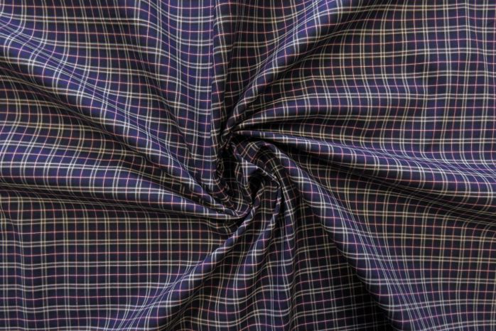 Exclusive Cotton Italian Tartan Check Shirting In Tones Of Navy, Red & Brown