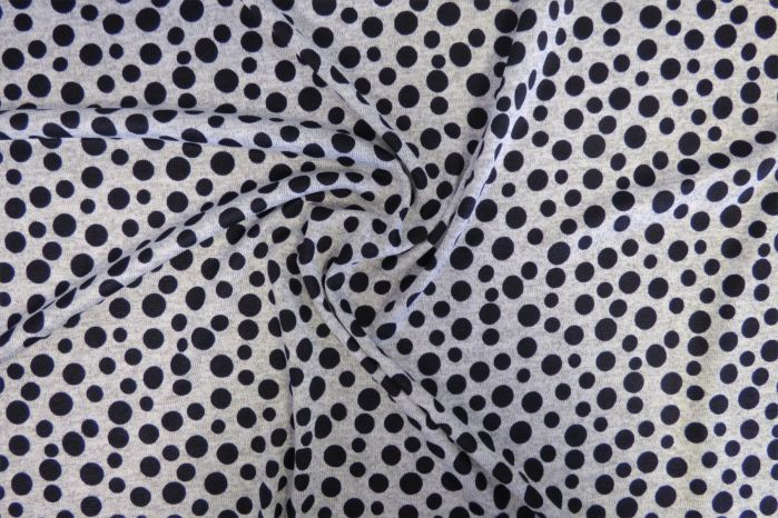 A Cationic Marl Oval Spot Knit Jersey In Navy On A Background Of Silver Grey Marl