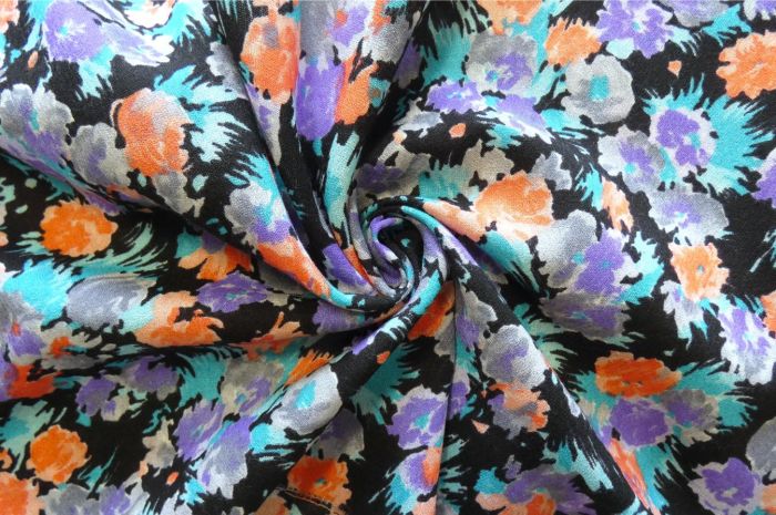 A Lovely 100% Pure Wool Challis Crepe Colourful Floral Blur In Tones Of Pink/Coral, Purple, Aqua, Grey & Black