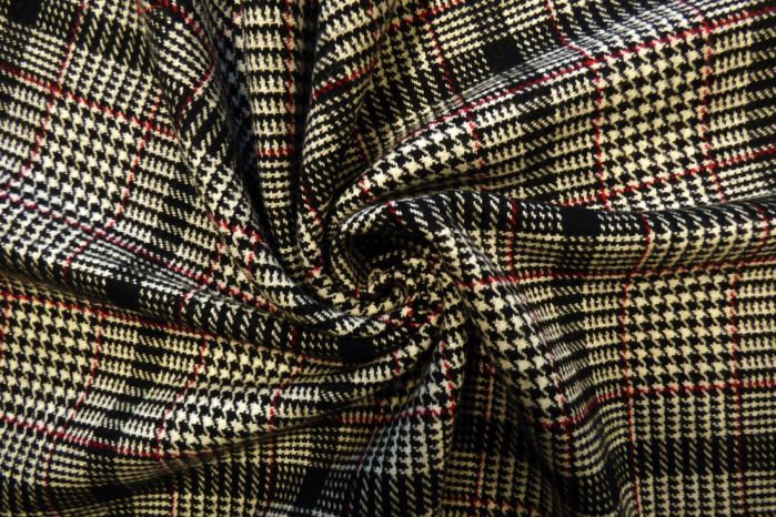A Lovely Tartan Coating In Black, Off-White & Cherry Red