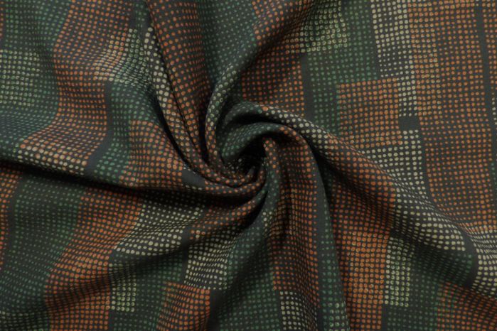 A Lovely 100% Pure Wool Challis Crepe Vintage Inspired Dotty Maze Design in Brown, Rust, Beige & Green Tones
