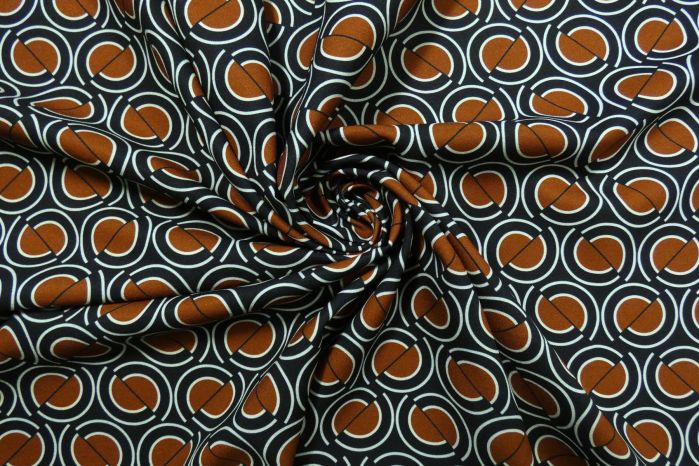 A Lovely Crepe De Chine Style Digital Abstract Shape Print In Brown, Ivory & Black