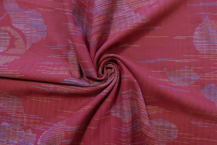 A Lovely 100% Pure Wool Challis Digital Print in Red Tones with Blue