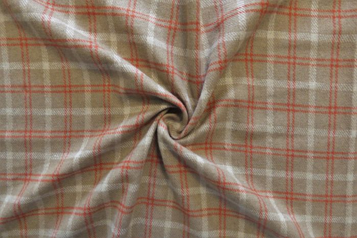 A Lovely Tartan Style Tweed Jacketing In Tones Of Warm Beige, Ivory And Blood Orange