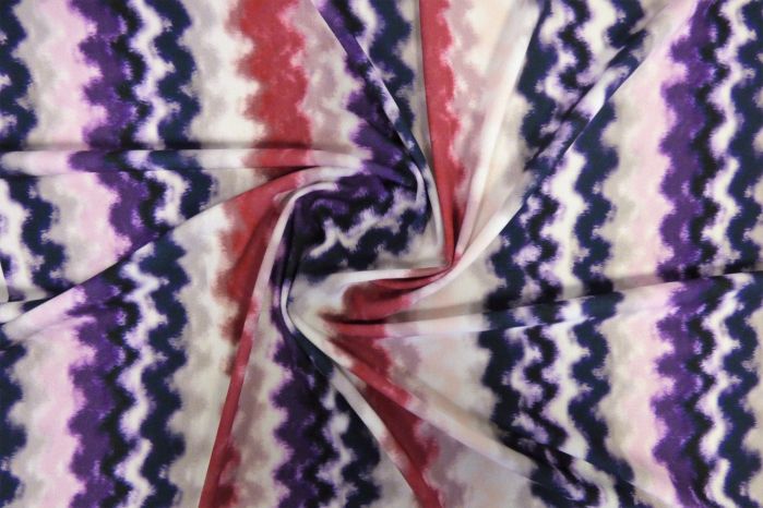 A Lovely Morgan Crepe Knitted Jersey Digital Retro Print In Tones of Navy, Violet, White, Cerise And Pale Pink