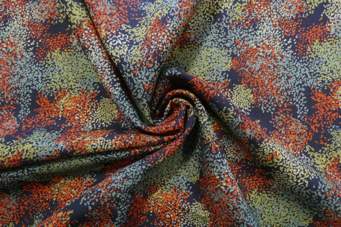 A Lovely 100% Pure Wool Challis Digital Print in Red, Blue on Midnight Background