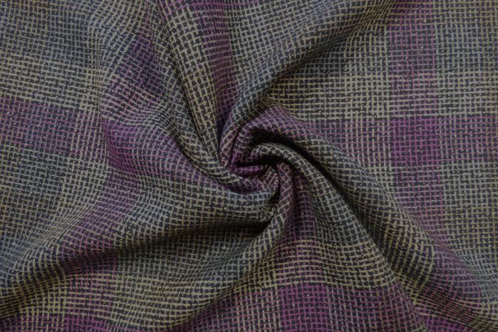 A Lovely 100% Pure Wool Challis Crepe Hazy Check in Violet, Beige, Silver & Black