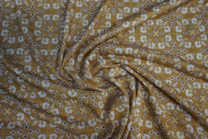 A Stunning Lightweight Jersey Digtial Floral Print in Old Gold